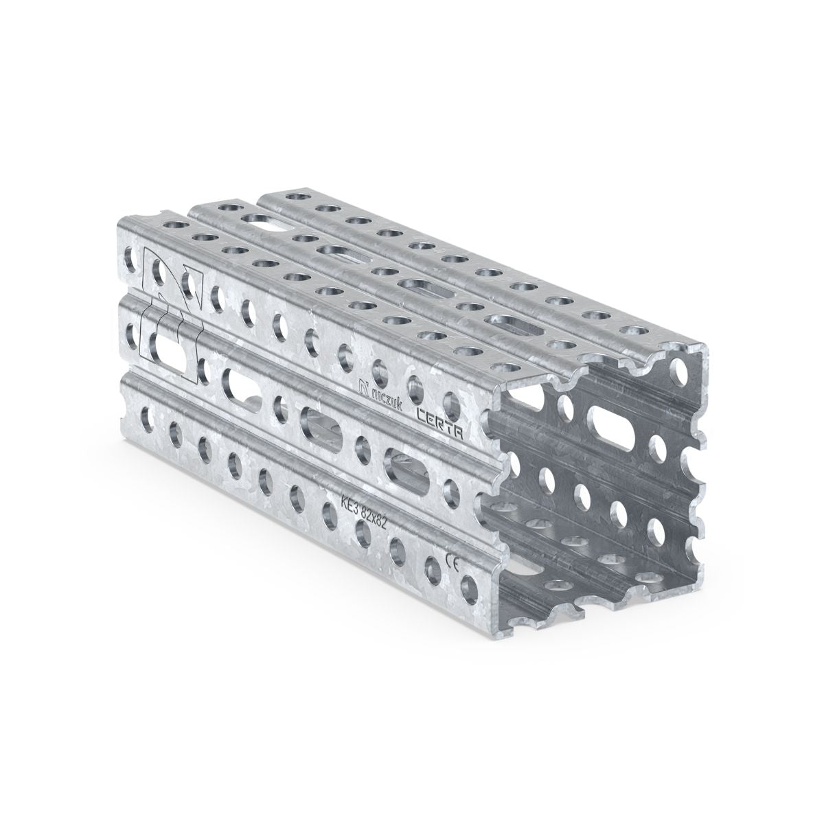 HD-monteringsskena, varmförzinkad med hål, 82x82 mm, tjocklek 3 mm, 3000 och 6000 mm.