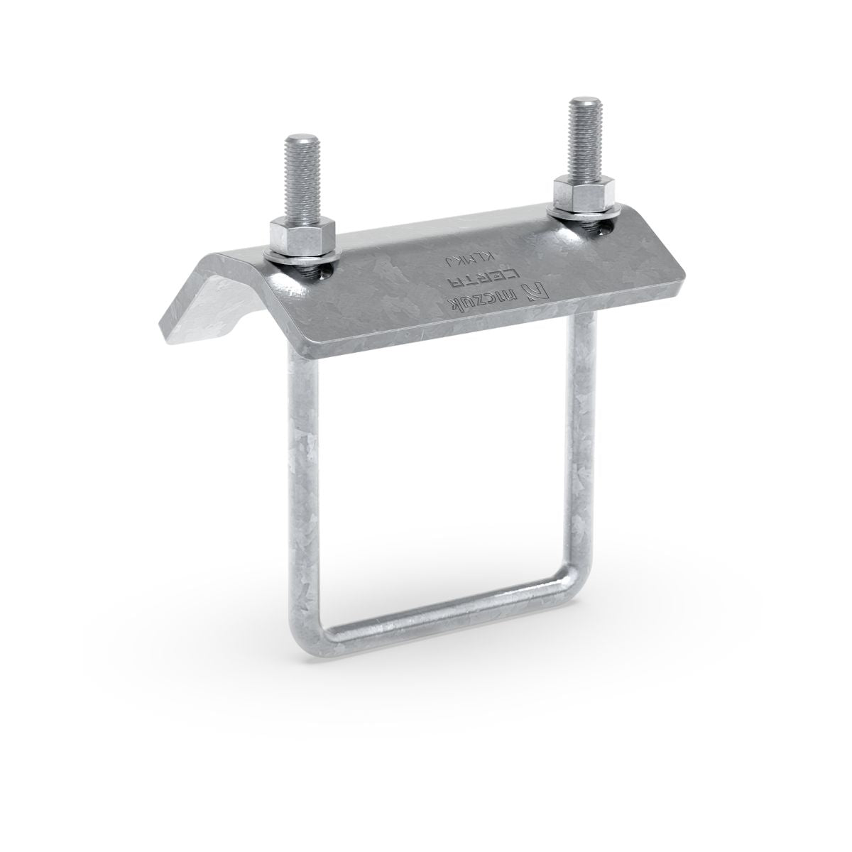 Varmförzinkad HD-balkfäste för 100x100 mm monteringsskena, max. godstjocklek 22 mm.